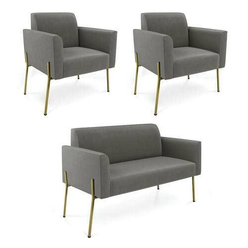 Todo mundo gosta de um ambiente bem decorado, e se for novidade melhor ainda não é mesmo? A D'Rossi, além de entregar beleza, qualidade e confiança aos clientes, ela dispõe das melhores opções em produtos, disponíveis no mercado! Portanto, se você quer um produto sofisticado, opte pelo Sofá Namoradeira e Poltrona. Ele possui um design lindo e sofisticado, com pés de Ferro Lateral Dourado e revestimento em tecido Suede Grafite, que harmonizam com qualquer ambiente. Esta mobília fica perfeita na sala de estar, recepções, mesa de jantar ou qualquer outro espaço que você queira decorar com estilo e bom gosto. Ela contém uma estrutura em madeira de reflorestamento eucalipto, que garante a resistência e a sustentabilidade do produto. Ela suporta até 120 kg de peso, podendo ser utilizada por pessoas de diferentes biotipos. Ela tem um acabamento reforçado e espuma de qualidade D-23, garantindo flexibilidade e conforto ao usuário. O Sofá Namoradeira e Poltrona Marisa é um produto de alta qualidade, beleza e funcionalidade. Ele é fácil de transportar, pois tem um peso leve e um tamanho compacto. O Sofá Namoradeira e 2 Poltronas Marisa é ideal, para dar aquele realce que seu ambiente precisa. Tenho certeza que esse móvel é a melhor compra que você irá fazer. Garanta já seu Sofá Namoradeira e 2 Poltronas Marisa e se acomode da melhor maneira possível! Dimensões do Sofá Namoradeira: Altura total: 81 cm Largura total: 114 cm Profundidade total: 64 cm Altura do encosto: 36 cm Largura do assento: 96 cm Profundidade do assento: 48 cm Altura do chão ao assento: 45 cm Espessura do assento: 18 cm Tamanho dos pés: 30 cm Espessura do braço: 9 cm Peso: 21 kg Dimensões da Poltrona: Altura total: 81 cm Largura total: 64 cm Profundidade total: 64 cm Altura do encosto: 36 cm Largura do assento: 47 cm Profundidade do assento: 48 cm Altura do chão ao assento: 45 cm Espessura do assento: 18 cm Tamanho dos pés: 30 cm Espessura do braço: 9 cm Peso: 14 kg Especificações do Produto Estrutura: Madeira Eucalipto Espuma: D-23 Tecido: Suede Tipo de pés: Pés de Ferro Dourado Peso suportado: Até 120 Kg Garantia: 90 dias contra defeito de fabricação Montagem: O produto vai montado, apenas parafusar a base Instruções de limpeza: Utilizar um pano limpo e levemente úmido Você irá receber: 01 Sofá Namoradeira e 02 Poltronas - Entregue em 03 Volumes
