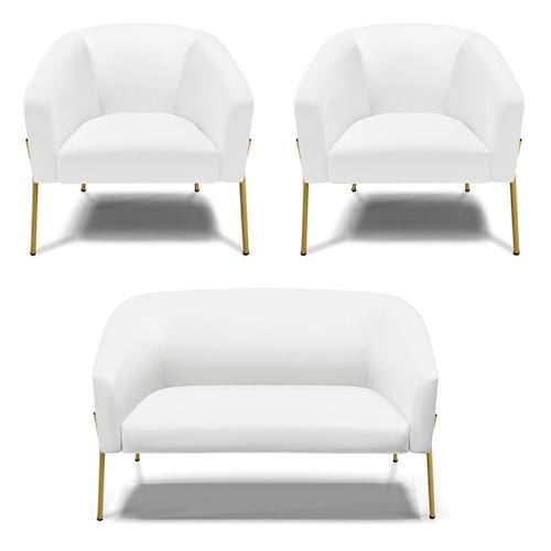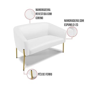 O Sofá Namoradeira 2 lugares com 2 Poltronas Stella é uma peça que combina elegância, conforto e durabilidade. Este conjunto tem um design moderno e sofisticado, com pés de ferro lateral dourado e revestimento em tecido Corino Branco, que harmonizam com qualquer ambiente. Ele é ideal para sala de estar, recepções, mesa de jantar ou qualquer outro espaço que você queira decorar com estilo e bom gosto. Ele tem uma estrutura em madeira de reflorestamento eucalipto, que garante a resistência e a sustentabilidade do produto. Ele suporta até 120 kg de peso, podendo ser utilizado por pessoas de diferentes biotipos. Ele tem um acabamento reforçado e espuma de qualidade D23, que oferece maciez e aconchego. Tem pés em aço carbono e pintura eletrostática, que protegem o produto contra corrosão e desgaste. Ele tem assento com persintas elásticas, que proporcionam flexibilidade e conforto. O kit Stella é um produto de alta qualidade, beleza e funcionalidade. Ele é fácil de transportar, pois tem um peso leve e um tamanho compacto. O Sofá Namoradeira 2 lugares com Poltrona Stella é um produto que vai fazer a diferença na sua decoração e no seu bem-estar. Ele vai trazer charme, conforto e durabilidade para o seu ambiente. Aproveite essa oferta e leve para casa um Sofá Namoradeira 2 lugares com Poltrona qualidade por um preço incrível. Essa é a sua chance de ter um kit maravilhoso por um preço imperdível. Corra e garanta seu Sofá Namoradeira 2 lugares com 2 Poltronas antes que acabe o estoque!