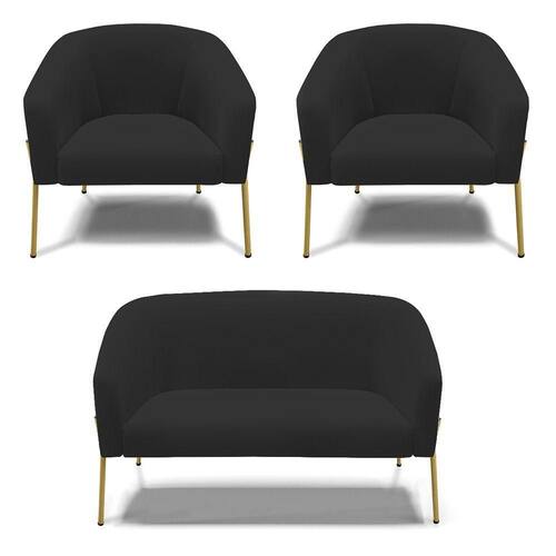 O Sofá Namoradeira 2 lugares com 2 Poltronas Stella é uma peça que combina elegância, conforto e durabilidade. Este conjunto tem um design moderno e sofisticado, com pés de ferro lateral dourado e revestimento em tecido Veludo Preto, que harmonizam com qualquer ambiente. Ele é ideal para sala de estar, recepções, mesa de jantar ou qualquer outro espaço que você queira decorar com estilo e bom gosto. Ele tem uma estrutura em madeira de reflorestamento eucalipto, que garante a resistência e a sustentabilidade do produto. Ele suporta até 120 kg de peso, podendo ser utilizado por pessoas de diferentes biotipos. Ele tem um acabamento reforçado e espuma de qualidade D23, que oferece maciez e aconchego. Tem pés em aço carbono e pintura eletrostática, que protegem o produto contra corrosão e desgaste. Ele tem assento com persintas elásticas, que proporcionam flexibilidade e conforto. O kit Stella é um produto de alta qualidade, beleza e funcionalidade. Ele é fácil de transportar, pois tem um peso leve e um tamanho compacto. O Sofá Namoradeira 2 lugares com Poltrona Stella é um produto que vai fazer a diferença na sua decoração e no seu bem-estar. Ele vai trazer charme, conforto e durabilidade para o seu ambiente. Aproveite essa oferta e leve para casa um Sofá Namoradeira 2 lugares com Poltrona qualidade por um preço incrível. Essa é a sua chance de ter um kit maravilhoso por um preço imperdível. Corra e garanta seu Sofá Namoradeira 2 lugares com 2 Poltronas antes que acabe o estoque!