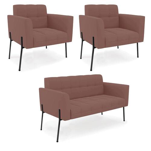 Sofá Namoradeira e 2 Poltronas Pé de Ferro Preto Elisa Veludo D03 - D`Rossi - Rosê