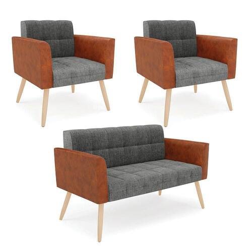 Você irá receber: 01 Sofá Namoradeira e 02 Poltronas - Entregue em: 03 Volumes