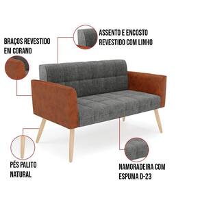 Você gosta de colecionar vários momentos memoráveis com sua família e amigos? Que tal recebê-los, com móveis de altíssima qualidade que só a D'Rossi tem? O Sofá Sofá Namoradeira e Poltrona Elisa é adequado para você! Seu design retrô é a grande tendência do momento. Pode ser utilizado em diversos espaços da casa, em salas, hall de entrada, quartos, cozinhas, varanda, sacada, escritório, dentre outros. Contém as seguintes características: A estrutura é feita de madeira de Eucalipto 100% de reflorestamento, e a Pés Palito l, além de ser resistente e durável, suporta em média até 120 kg. Assento, encosto e braços, contém enchimento de espuma D-23 e é estofada em tecido Corano Nozes com Linho, no tom Grafite, que oferece muito conforto e resistência ao sentar, com aquela sensação de maciez e aconchego. Possui também, detalhes de costura no encosto e assento, resultando em um acabamento impecável, conferindo muito mais valor e elegância ao seu espaço. Para complementar a decoração com esse lindo Kit Sofá Namoradeira e Poltrona Elisa, a dica é utilizar mantas, almofadas ou vasinho de flor. E pronto, seu cantinho estará perfeito para descansar e relaxar! Aqui, você encontra várias opções, para que seus amigos e familiares se sintam acolhidos. Garanta já seu Kit Sofá Namoradeira e 2 Poltronas Elisa.