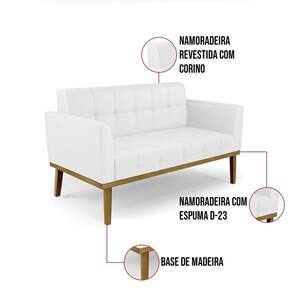 Você gosta de colecionar vários momentos memoráveis com sua família e amigos? Que tal recebê-los, com móveis de altíssima qualidade que só a D'Rossi tem? O Sofá Sofá Namoradeira e Poltrona Elisa é adequado para você! Seu design retrô é a grande tendência do momento. Pode ser utilizado em diversos espaços da casa, em salas, hall de entrada, quartos, cozinhas, varanda, sacada, escritório, dentre outros. Contém as seguintes características: A estrutura é feita de madeira de Eucalipto 100% de reflorestamento, e a Base de Madeira Fixa Castanho, além de ser resistente e durável, suporta em média até 120 kg. Assento, encosto e braços, contém enchimento de espuma D-23 e é estofada em tecido Corino, no tom Off White, que oferece muito conforto e resistência ao sentar, com aquela sensação de maciez e aconchego. Possui também, detalhes de costura no encosto e assento, resultando em um acabamento impecável, conferindo muito mais valor e elegância ao seu espaço. Para complementar a decoração com esse lindo kit Sofá Sofá Namoradeira e Poltrona Elisa, a dica é utilizar mantas, almofadas ou vasinho de flor. E pronto, seu cantinho estará perfeito para descansar e relaxar! Aqui, você encontra várias opções, para que seus amigos e familiares se sintam acolhidos. Garanta já seu kit Sofá Sofá Namoradeira e Poltrona Elisa.
