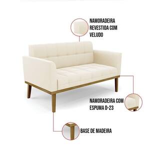 Você gosta de colecionar vários momentos memoráveis com sua família e amigos? Que tal recebê-los, com móveis de altíssima qualidade que só a D'Rossi tem? O Sofá Sofá Namoradeira e Poltrona Elisa é adequado para você! Seu design retrô é a grande tendência do momento. Pode ser utilizado em diversos espaços da casa, em salas, hall de entrada, quartos, cozinhas, varanda, sacada, escritório, dentre outros. Contém as seguintes características: A estrutura é feita de madeira de Eucalipto 100% de reflorestamento, e a Base de Madeira Fixa Castanho, além de ser resistente e durável, suporta em média até 120 kg. Assento, encosto e braços, contém enchimento de espuma D-23 e é estofada em tecido Veludo, na cor Bege, que oferece muito conforto e resistência ao sentar, com aquela sensação de maciez e aconchego. Possui também, detalhes de costura no encosto e assento, resultando em um acabamento impecável, conferindo muito mais valor e elegância ao seu espaço. Para complementar a decoração com esse lindo kit Sofá Sofá Namoradeira e Poltrona Elisa, a dica é utilizar mantas, almofadas ou vasinho de flor. E pronto, seu cantinho estará perfeito para descansar e relaxar! Aqui, você encontra várias opções, para que seus amigos e familiares se sintam acolhidos. Garanta já seu kit Sofá Sofá Namoradeira e Poltrona Elisa.
