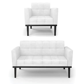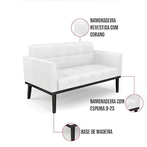 Você gosta de colecionar vários momentos memoráveis com sua família e amigos? Que tal recebê-los, com móveis de altíssima qualidade que só a D'Rossi tem? O Sofá Sofá Namoradeira e Poltrona Elisa é adequado para você! Seu design retrô é a grande tendência do momento. Pode ser em diversos espaços da casa, em salas, hall de entrada, quartos, cozinhas, varanda, sacada, escritório, dentre outros. Contém as seguintes características: A estrutura é feita de madeira de Eucalipto 100% de reflorestamento, e a Base de Madeira Fixa Preto, além de ser resistente e durável, suporta em média até 120 kg. Assento, encosto e braços, contém enchimento de espuma D-23 e é estofada em tecido Corano, no tom Branco, que oferece muito conforto e resistência ao sentar, com aquela sensação de maciez e aconchego. Possui também, detalhes de costura no encosto e assento, resultando em um acabamento impecável, conferindo muito mais valor e elegância ao seu espaço. Para complementar a decoração com esse lindo Kit Sofá Namoradeira e Poltrona Elisa, a dica é utilizar mantas, almofadas ou vasinho de flor. E pronto, seu cantinho estará perfeito para descansar e relaxar! Aqui, você encontra várias opções, para que seus amigos e familiares se sintam acolhidos. Garanta já seu Kit Sofá Namoradeira e Poltrona Elisa.