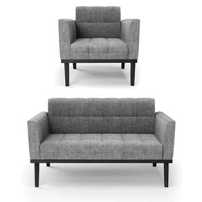 Altura total: 81 cm Largura total: 114 cm Profundidade total: 64 cm Altura do encosto: 36 cm Largura do assento: 96 cm Profundidade do assento: 48 cm Altura do chão ao assento: 45 cm Espessura do assento: 18 cm Tamanho dos pés: 30 cm Espessura do braço: 9 cm Peso: 24 kg
