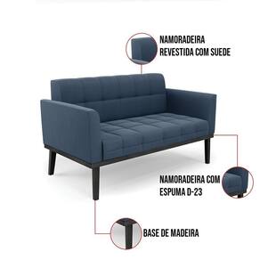 Você gosta de colecionar vários momentos memoráveis com sua família e amigos? Que tal recebê-los, com móveis de altíssima qualidade que só a D'Rossi tem? O Sofá Sofá Namoradeira e Poltrona Elisa é adequado para você! Seu design retrô é a grande tendência do momento. Pode ser utilizado em diversos espaços da casa, em salas, hall de entrada, quartos, cozinhas, varanda, sacada, escritório, dentre outros. Contém as seguintes características: A estrutura é feita de madeira de Eucalipto 100% de reflorestamento, e a Base de Madeira Fixa Preto, além de ser resistente e durável, suporta em média até 120 kg. Assento, encosto e braços, contém enchimento de espuma D-23 e é estofada em tecido Suede, no tom Azul Marinho, que oferece muito conforto e resistência ao sentar, com aquela sensação de maciez e aconchego. Possui também, detalhes de costura no encosto e assento, resultando em um acabamento impecável, conferindo muito mais valor e elegância ao seu espaço. Para complementar a decoração com esse lindo Kit Sofá Namoradeira e Poltrona Elisa, a dica é utilizar mantas, almofadas ou vasinho de flor. E pronto, seu cantinho estará perfeito para descansar e relaxar! Aqui, você encontra várias opções, para que seus amigos e familiares se sintam acolhidos. Garanta já seu Kit Sofá Namoradeira e Poltrona Elisa.