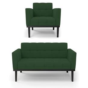 Sofá Namoradeira e Poltrona Base de Madeira Preto Elisa Veludo D03 - D`Rossi - Verde
