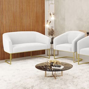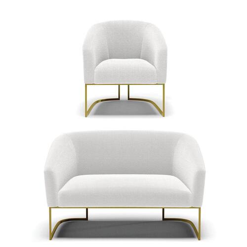 Sofá Namoradeira e Poltrona Base Industrial Dourado Stella Bouclê D03 - D`Rossi - Branco