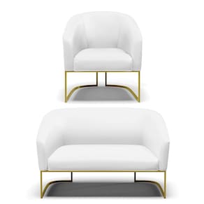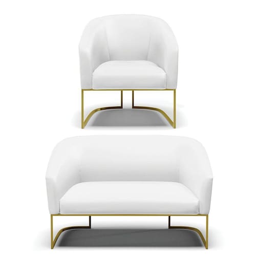 O Sofá Namoradeira 2 lugares com Potrona Stella é uma peça que combina elegância, conforto e durabilidade. Este conjunto tem um design moderno e sofisticado, com Base Industrial Dourado e revestimento em tecido Corino Branco, que harmonizam com qualquer ambiente. Ele é ideal para sala de estar, recepções, mesa de jantar ou qualquer outro espaço que você queira decorar com estilo e bom gosto. Ele tem uma estrutura em madeira de reflorestamento eucalipto, que garante a resistência e a sustentabilidade do produto. Ele suporta até 120 kg de peso, podendo ser utilizado por pessoas de diferentes biotipos. Ele tem um acabamento reforçado e espuma de qualidade D23, que oferece maciez e aconchego. Tem pés em aço carbono e pintura eletrostática, que protegem o produto contra corrosão e desgaste. Ele tem assento com persintas elásticas, que proporcionam flexibilidade e conforto. O kit Stella é um produto de alta qualidade, beleza e funcionalidade. Ele é fácil de transportar, pois tem um peso leve e um tamanho compacto. O Sofá Namoradeira 2 lugares com Potrona Stella é um produto que vai fazer a diferença na sua decoração e no seu bem-estar. Ele vai trazer charme, conforto e durabilidade para o seu ambiente. Aproveite essa oferta e leve para casa um Sofá Namoradeira 2 lugares e 2 Poltronas qualidade por um preço incrível. Essa é a sua chance de ter um kit maravilhoso por um preço imperdível. Corra e garanta seu Sofá Namoradeira 2 lugares e 2 Poltronas antes que acabe o estoque!