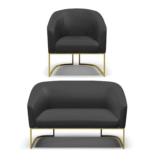 O Sofá Namoradeira 2 lugares com Potrona Stella é uma peça que combina elegância, conforto e durabilidade. Este conjunto tem um design moderno e sofisticado, com Base Industrial Dourado e revestimento em tecido Corino Preto, que harmonizam com qualquer ambiente. Ele é ideal para sala de estar, recepções, mesa de jantar ou qualquer outro espaço que você queira decorar com estilo e bom gosto. Ele tem uma estrutura em madeira de reflorestamento eucalipto, que garante a resistência e a sustentabilidade do produto. Ele suporta até 120 kg de peso, podendo ser utilizado por pessoas de diferentes biotipos. Ele tem um acabamento reforçado e espuma de qualidade D23, que oferece maciez e aconchego. Tem pés em aço carbono e pintura eletrostática, que protegem o produto contra corrosão e desgaste. Ele tem assento com persintas elásticas, que proporcionam flexibilidade e conforto. O kit Stella é um produto de alta qualidade, beleza e funcionalidade. Ele é fácil de transportar, pois tem um peso leve e um tamanho compacto. O Sofá Namoradeira 2 lugares com Potrona Stella é um produto que vai fazer a diferença na sua decoração e no seu bem-estar. Ele vai trazer charme, conforto e durabilidade para o seu ambiente. Aproveite essa oferta e leve para casa um Sofá Namoradeira 2 lugares e 2 Poltronas qualidade por um preço incrível. Essa é a sua chance de ter um kit maravilhoso por um preço imperdível. Corra e garanta seu Sofá Namoradeira 2 lugares e 2 Poltronas antes que acabe o estoque!