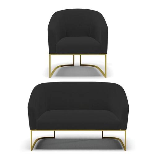 O Sofá Namoradeira 2 lugares com Poltrona Stella é uma peça que combina elegância, conforto e durabilidade. Este conjunto tem um design moderno e sofisticado, com Base Industrial Dourado e revestimento em tecido Veludo Preto, que harmonizam com qualquer ambiente. Ele é ideal para sala de estar, recepções, mesa de jantar ou qualquer outro espaço que você queira decorar com estilo e bom gosto. Ele tem uma estrutura em madeira de reflorestamento eucalipto, que garante a resistência e a sustentabilidade do produto. Ele suporta até 120 kg de peso, podendo ser utilizado por pessoas de diferentes biotipos. Ele tem um acabamento reforçado e espuma de qualidade D23, que oferece maciez e aconchego. Tem pés em aço carbono e pintura eletrostática, que protegem o produto contra corrosão e desgaste. Ele tem assento com persintas elásticas, que proporcionam flexibilidade e conforto. O kit Stella é um produto de alta qualidade, beleza e funcionalidade. Ele é fácil de transportar, pois tem um peso leve e um tamanho compacto. O Sofá Namoradeira 2 lugares com Poltrona Stella é um produto que vai fazer a diferença na sua decoração e no seu bem-estar. Ele vai trazer charme, conforto e durabilidade para o seu ambiente. Aproveite essa oferta e leve para casa um Sofá Namoradeira 2 lugares com Poltrona qualidade por um preço incrível. Essa é a sua chance de ter um kit maravilhoso por um preço imperdível. Corra e garanta seu Sofá Namoradeira 2 lugares com Poltrona antes que acabe o estoque!