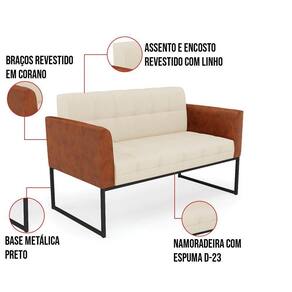 Você gosta de colecionar vários momentos memoráveis com sua família e amigos? Que tal recebê-los, com móveis de altíssima qualidade que só a D'Rossi tem? O Sofá Sofá Namoradeira e Poltrona Elisa é adequado para você! Seu design retrô é a grande tendência do momento. Pode ser utilizado em diversos espaços da casa, em salas, hall de entrada, quartos, cozinhas, varanda, sacada, escritório, dentre outros. Contém as seguintes características: A estrutura é feita de madeira de Eucalipto 100% de reflorestamento, e a Base Industrial Preto, além de ser resistente e durável, suporta em média até 120 kg. Assento, encosto e braços, contém enchimento de espuma D-23 e é estofada em tecido Corano Nozes com Linho, no tom Bege, que oferece muito conforto e resistência ao sentar, com aquela sensação de maciez e aconchego. Possui também, detalhes de costura no encosto e assento, resultando em um acabamento impecável, conferindo muito mais valor e elegância ao seu espaço. Para complementar a decoração com esse lindo Kit Sofá Namoradeira e Poltrona Elisa, a dica é utilizar mantas, almofadas ou vasinho de flor. E pronto, seu cantinho estará perfeito para descansar e relaxar! Aqui, você encontra várias opções, para que seus amigos e familiares se sintam acolhidos. Garanta já seu Kit Sofá Namoradeira e Poltrona Elisa.