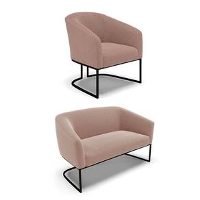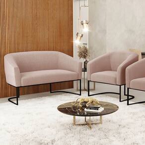 Sofá Namoradeira e Poltrona Base Industrial Preto Stella Bouclê D03 - D`Rossi - Rosê