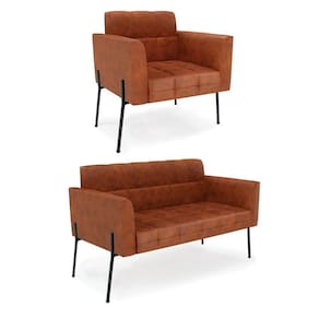 Sofá Namoradeira E Poltrona Base Pé De Ferro Preto Elisa Corano D03 - D'rossi Cor Nozes