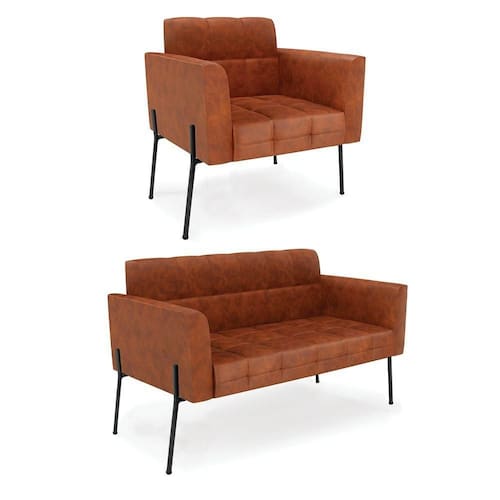 Você gosta de colecionar vários momentos memoráveis com sua família e amigos? Que tal recebê-los, com móveis de altíssima qualidade que só a D'Rossi tem? O Sofá Sofá Namoradeira e Poltrona Elisa é adequado para você! Seu design retrô é a grande tendência do momento. Pode ser utilizado em diversos espaços da casa, em salas, hall de entrada, quartos, cozinhas, varanda, sacada, escritório, dentre outros. Contém as seguintes características: A estrutura é feita Madeira de Eucalipto 100% de reflorestamento, Pés de Ferro Preto que além de ser resistente e durável, suporta em média até 120 kg. Assento, encosto e braços, contém enchimento de espuma D-23 e é estofada em tecido Corano, que oferece muito conforto e resistência ao sentar, com aquela sensação de maciez e aconchego. Possui também, detalhes de costura no encosto e assento, resultando em um acabamento impecável, conferindo muito mais valor e elegância ao seu espaço. Para complementar a decoração com esse lindo Kit Sofá Namoradeira e Poltrona Elisa, a dica é utilizar mantas, almofadas ou vasinho de flor. E pronto, seu cantinho estará perfeito para descansar e relaxar! Aqui, você encontra várias opções, para que seus amigos e familiares se sintam acolhidos. Garanta já seu Kit Sofá Namoradeira e Poltrona Elisa.