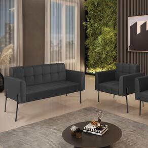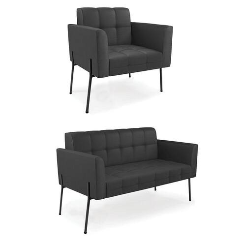 Estrutura: Madeira Eucalipto Espuma: D-23 Tecido: Corino Tipo de pés: Pé de Ferro Dourado Peso suportado: Até 120 Kg Garantia: 90 dias contra defeito de fabricação Montagem: O produto vai montado, apenas parafusar a base Instruções de limpeza: Utilizar um pano limpo e levemente úmido Você irá receber: 01 Sofá Namoradeira e 01 Poltrona - Entregue em: 02 Volumes