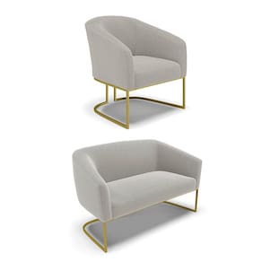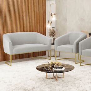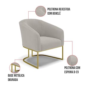 Sofá Namoradeira e Poltrona Industrial Dourado Stella Bouclê Cinza D03 - D`Rossi
