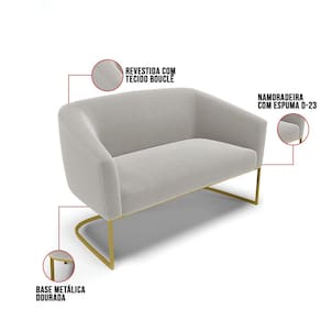 Tem novidades chegando por aqui! Olha só essa nossa inédita Namoradeira e Poltrona Stella Bouclê. Sim, as melhores opções em Namoradeira estão aqui! A Namoradeira e Poltrona Stella Bouclê é para todas as ocasiões, é ideal para você relaxar, assistir tv ou ler um livro, mantendo-o confortável ao longo do dia! Um estofado versátil, que foge do convencional pelo seu design e tecido luxuoso. Seu formato curvo, marcante e sofisticado, oferece conforto de forma excepcional, com aquela sensação de abraço, que deixa o coração quentinho! Desenvolvida com atenção aos detalhes, para atender todas suas expectativas e necessidades. Seu aspecto arredondado e anatômico, possibilita que a postura fique sempre alinhada, mantendo a coluna na posição correta. Ela dispõe de um acabamento impecável, revestida em Bouclê em tom Cinza, um tecido maleável que além de ser muito bonito, é a grande tendência do momento, por ser uma lã mais refinada, quente, com toque suave e agradável, semelhante à textura natural da ovelha. Contém uma estrutura robusta, sua sustentação é dada pela Base Industrial no tom Dourado, que garantem mais segurança e firmeza ao sentar-se. Já o enchimento é feito em espuma D-23 no encosto e assento, garantindo maior conforto ao usuário. Ah! Vale a pena lembrar que a Namoradeira e Poltrona Stella Bouclê, foi produzida em quantidades limitadas, para aqueles que procuram criar um visual diferenciado e exclusivo. Então, não deixe de aproveitar esse lançamento, hem! Leve a sua agora mesmo.