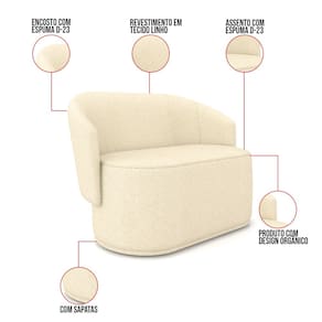 Sofá Namoradeira e Poltrona Orgânica para Sala Malu Linho M11 - D`Rossi - Bege