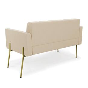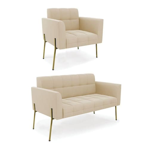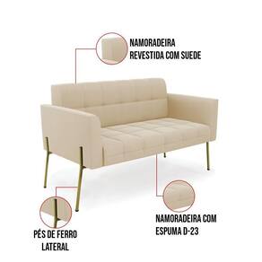 Sofá Namoradeira E Poltrona Pé De Ferro Dourado Elisa Suede D03 - D'rossi Cor Bege