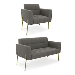 Sofá Namoradeira E Poltrona Pé De Ferro Dourado Elisa Suede D03 - D'rossi Cor Grafite
