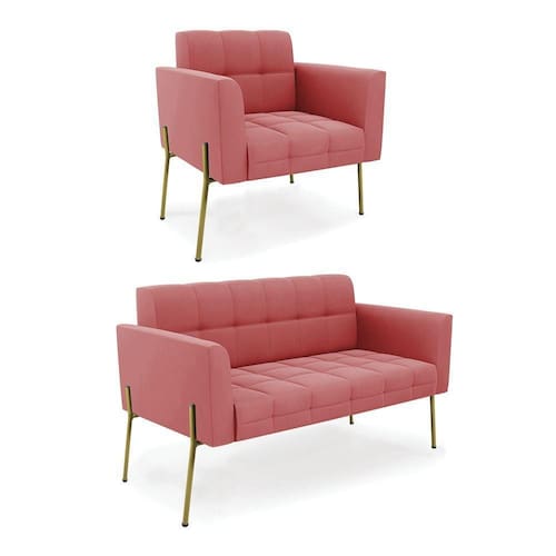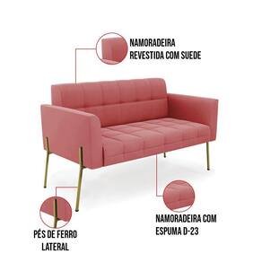 Você gosta de colecionar vários momentos memoráveis com sua família e amigos? Que tal recebê-los, com móveis de altíssima qualidade que só a D'Rossi tem? O Sofá Sofá Namoradeira e Poltrona Elisa é adequado para você! Seu design retrô é a grande tendência do momento. Pode ser utilizado em diversos espaços da casa, em salas, hall de entrada, quartos, cozinhas, varanda, sacada, escritório, dentre outros. Contém as seguintes características: A estrutura é feita Madeira de Eucalipto 100% de reflorestamento, Pés de Ferro Dourado que além de ser resistente e durável, suporta em média até 120 kg. Assento, encosto e braços, contém enchimento de espuma D-23 e é estofada em tecido Suede, que oferece muito conforto e resistência ao sentar, com aquela sensação de maciez e aconchego. Possui também, detalhes de costura no encosto e assento, resultando em um acabamento impecável, conferindo muito mais valor e elegância ao seu espaço. Para complementar a decoração com esse lindo Kit Sofá Namoradeira e Poltrona Elisa, a dica é utilizar mantas, almofadas ou vasinho de flor. E pronto, seu cantinho estará perfeito para descansar e relaxar! Aqui, você encontra várias opções, para que seus amigos e familiares se sintam acolhidos. Garanta já seu Kit Sofá Namoradeira e Poltrona Elisa.
