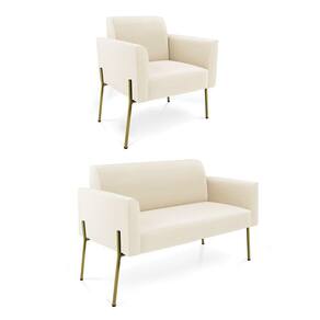 Sofá Namoradeira e Poltrona Pé de Ferro Dourado Salão Marisa Veludo D03 - D`Rossi - Preto