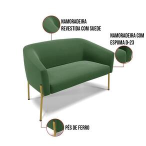 Sofá Namoradeira E Poltrona Pé De Ferro Dourado Stella Suede D03 - D'rossi Cor Verde