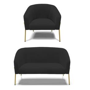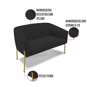Sofá Namoradeira E Poltrona Pé De Ferro Dourado Stella Veludo Preto D03 - D'rossi