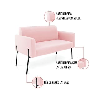 "Todo mundo gosta de um ambiente bem decorado, e se for novidade melhor ainda não é mesmo? A D'Rossi, além de entregar beleza, qualidade e confiança aos clientes, ela dispõe das melhores opções em produtos, disponíveis no mercado! Portanto, se você quer um produto sofisticado, opte pelo Sofá Namoradeira e Poltrona. Ele possui um design lindo e sofisticado, com pés de Ferro Lateral Preto e revestimento em tecido Suede Rosa Bebê, que harmonizam com qualquer ambiente. Esta mobília fica perfeita na sala de estar, recepções, mesa de jantar ou qualquer outro espaço que você queira decorar com estilo e bom gosto. Ela contém uma estrutura em madeira de reflorestamento eucalipto, que garante a resistência e a sustentabilidade do produto. Ela suporta até 120 kg de peso, podendo ser utilizada por pessoas de diferentes biotipos. Ela tem um acabamento reforçado e espuma de qualidade D-23, garantindo flexibilidade e conforto ao usuário. O Sofá Namoradeira e Poltrona Marisa é um produto de alta qualidade, beleza e funcionalidade. Ele é fácil de transportar, pois tem um peso leve e um tamanho compacto. O Sofá Namoradeira e Poltrona Marisa é ideal, para dar aquele realce que seu ambiente precisa. Tenho certeza que esse móvel é a melhor compra que você irá fazer. Garanta já seu Sofá Namoradeira e Poltrona Marisa e se acomode da melhor maneira possível!"