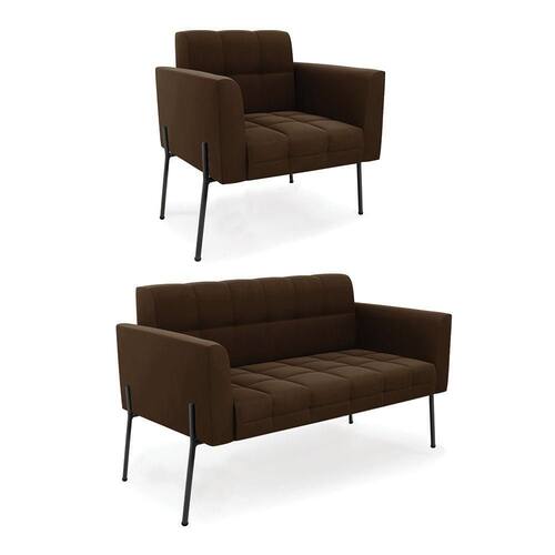 Você gosta de colecionar vários momentos memoráveis com sua família e amigos? Que tal recebê-los, com móveis de altíssima qualidade que só a D'Rossi tem? O Sofá Sofá Namoradeira e Poltrona Elisa é adequado para você! Seu design retrô é a grande tendência do momento. Pode ser utilizado em diversos espaços da casa, em salas, hall de entrada, quartos, cozinhas, varanda, sacada, escritório, dentre outros. Contém as seguintes características: A estrutura é feita Madeira de Eucalipto 100% de reflorestamento, Pés de Ferro Preto que além de ser resistente e durável, suporta em média até 120 kg. Assento, encosto e braços, contém enchimento de espuma D-23 e é estofada em tecido Suede, no tom Marrom, que oferece muito conforto e resistência ao sentar, com aquela sensação de maciez e aconchego. Possui também, detalhes de costura no encosto e assento, resultando em um acabamento impecável, conferindo muito mais valor e elegância ao seu espaço. Para complementar a decoração com esse lindo Kit Sofá Namoradeira e Poltrona Elisa, a dica é utilizar mantas, almofadas ou vasinho de flor. E pronto, seu cantinho estará perfeito para descansar e relaxar! Aqui, você encontra várias opções, para que seus amigos e familiares se sintam acolhidos. Garanta já seu Kit Sofá Namoradeira e Poltrona Elisa.