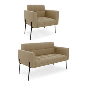 Estrutura: Madeira Eucalipto Espuma: D-23 Tecido: Suede Tipo de pés: Pé de Ferro Preto Peso suportado: Até 120 Kg Garantia: 90 dias contra defeito de fabricação Montagem: O produto vai montado, apenas parafusar a base Instruções de limpeza: Utilizar um pano limpo e levemente úmido Você irá receber: 01 Sofá Namoradeira e 01 Poltrona - Entregue em: 02 Volumes