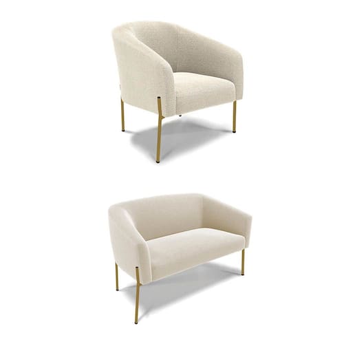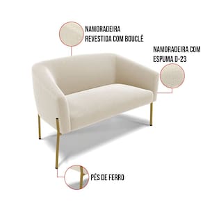 Sofá Namoradeira e Poltrona Pé Ferro Dourado Stella Bouclê Bege D03 - D`Rossi