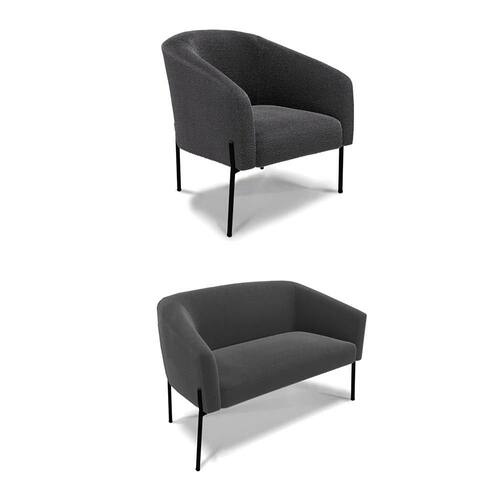 Sofá Namoradeira e Poltrona Pé Ferro Preto Stella Bouclê D03 - D`Rossi - Grafite