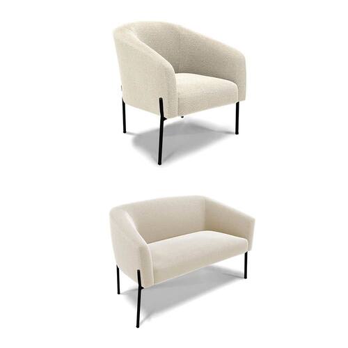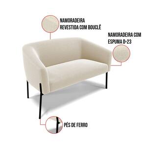 Sofá Namoradeira e Poltrona Pé Ferro Preto Stella Bouclê D03 - D`Rossi - Bege