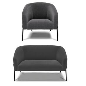 Sofá Namoradeira E Poltrona Pé Ferro Preto Stella Bouclê Grafite D03 - D`rossi