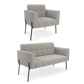 Sofá Namoradeira E Poltrona Pé Ferro Pto Elisa Bouclê Cinza D03 - D'rossi