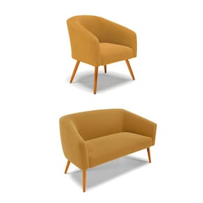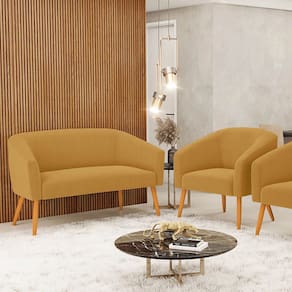 Sofá Namoradeira e Poltrona Pé Palito Castanho Stella Bouclê D03 - D`Rossi - Mostarda