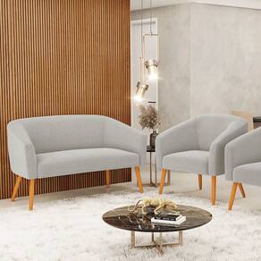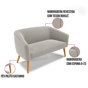 Sofá Namoradeira e Poltrona Pé Palito Castanho Stella Bouclê D03 - D`Rossi - Cinza
