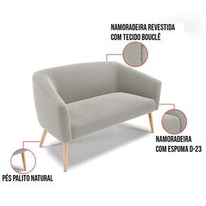Tem novidades chegando por aqui! Olha só essa nossa inédita Namoradeira e Poltrona Stella Bouclê. Sim, as melhores opções em Namoradeira estão aqui! A Namoradeira e Poltrona Stella Bouclê é para todas as ocasiões, é ideal para você relaxar, assistir tv ou ler um livro, mantendo-o confortável ao longo do dia! Um estofado versátil, que foge do convencional pelo seu design e tecido luxuoso. Seu formato curvo, marcante e sofisticado, oferece conforto de forma excepcional, com aquela sensação de abraço, que deixa o coração quentinho! Desenvolvida com atenção aos detalhes, para atender todas suas expectativas e necessidades. Seu aspecto arredondado e anatômico, possibilita que a postura fique sempre alinhada, mantendo a coluna na posição correta. Ela dispõe de um acabamento impecável, revestida em Bouclê em tom Cinza, um tecido maleável que além de ser muito bonito, é a grande tendência do momento, por ser uma lã mais refinada, quente, com toque suave e agradável, semelhante à textura natural da ovelha. Contém uma estrutura robusta, sua sustentação é dada pelos Pés Palito no tom Natural, que garantem mais segurança e firmeza ao sentar-se. Já o enchimento é feito em espuma D-23 no encosto e assento, garantindo maior conforto ao usuário. Ah! Vale a pena lembrar que a Namoradeira e Poltrona Stella Bouclê, foi produzida em quantidades limitadas, para aqueles que procuram criar um visual diferenciado e exclusivo. Então, não deixe de aproveitar esse lançamento, hem! Leve a sua agora mesmo.