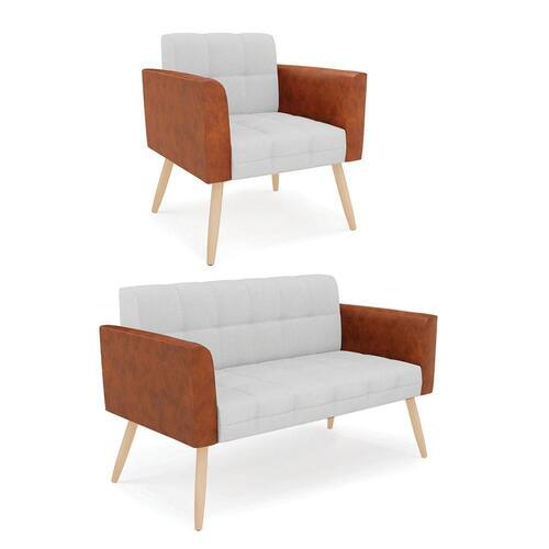 Você irá receber: 01 Sofá Namoradeira e 01 Poltrona - Entregue em: 02 Volumes