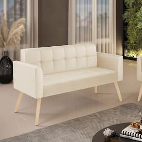 Você gosta de colecionar vários momentos memoráveis com sua família e amigos? Que tal recebê-los, com móveis de altíssima qualidade que só a DRossi tem? A Namoradeira 2 Lugares Elisa é adequada para você! Seu design retrô é a grande tendência do momento. Pode ser usada em diversos espaços da casa, em salas, hall de entrada, quartos, cozinhas, varanda, sacada, escritório, dentre outros. Contém as seguintes características: A estrutura é feita de madeira de Eucalipto 100% de reflorestamento, e os Pés Palito Natural, além de serem resistentes e duráveis, suportam em média até 120 kg. Assento, encosto e braços, contém enchimento de espuma D-23 e é estofada em tecido Corino, que oferece muito conforto e resistência ao sentar, com aquela sensação de maciez e aconchego. Possui também, detalhes de costura no encosto e assento, resultando em um acabamento impecável, conferindo muito mais valor e elegância ao seu espaço. Para complementar a decoração com essa linda namoradeira, a dica é utilizar mantas, almofadas ou vasinho de flor. E pronto, seu cantinho estará perfeito para descansar e relaxar! Aqui, você encontra várias opções, para que seus amigos e familiares se sintam acolhidos. Garanta já sua Namoradeira Elisa.
