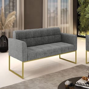 Você gosta de colecionar vários momentos memoráveis com sua família e amigos? Que tal recebê-los, com móveis de altíssima qualidade que só a DRossi tem? A Namoradeira 2 Lugares Elisa é adequada para você! Seu design retrô é a grande tendência do momento. Pode ser usada em diversos espaços da casa, em salas, hall de entrada, quartos, cozinhas, varanda, sacada, escritório, dentre outros. Contém as seguintes características: A estrutura é feita de madeira de Eucalipto 100% de reflorestamento, e a Base Industrial Metálica Dourada, além de ser resistente e durável, suporta em média até 120 kg. Assento, encosto e braços, contém enchimento de espuma D-23 e é estofada em tecido Linho, no tom Grafite, que oferece muito conforto e resistência ao sentar, com aquela sensação de maciez e aconchego. Possui também, detalhes de costura no encosto e assento, resultando em um acabamento impecável, conferindo muito mais valor e elegância ao seu espaço. Para complementar a decoração com essa linda namoradeira, a dica é utilizar mantas, almofadas ou vasinho de flor. E pronto, seu cantinho estará perfeito para descansar e relaxar! Aqui, você encontra várias opções, para que seus amigos e familiares se sintam acolhidos. Garanta já sua Namoradeira Elisa.
