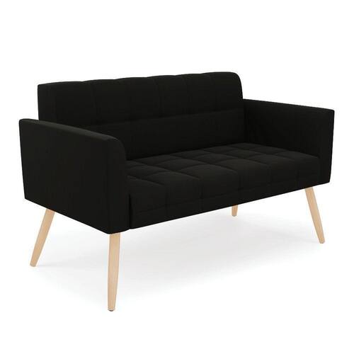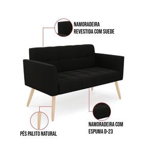 Sofá Namoradeira Elisa Suede Pés Palito Natural - D`rossi Cor Preto