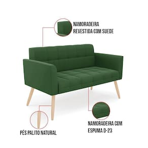 Você gosta de colecionar vários momentos memoráveis com sua família e amigos? Que tal recebê-los, com móveis de altíssima qualidade que só a DRossi tem? A Namoradeira 2 Lugares Elisa é adequada para você! Seu design retrô é a grande tendência do momento. Pode ser usada em diversos espaços da casa, em salas, hall de entrada, quartos, cozinhas, varanda, sacada, escritório, dentre outros. Contém as seguintes características: A estrutura é feita de madeira de Eucalipto 100% de reflorestamento, e os Pés Palito Natural, além de serem resistentes e duráveis, suportam em média até 120 kg. Assento, encosto e braços, contém enchimento de espuma D-23 e é estofada em tecido Suede, no tom Verde, que oferece muito conforto e resistência ao sentar, com aquela sensação de maciez e aconchego. Possui também, detalhes de costura no encosto e assento, resultando em um acabamento impecável, conferindo muito mais valor e elegância ao seu espaço. Para complementar a decoração com essa linda namoradeira, a dica é utilizar mantas, almofadas ou vasinho de flor. E pronto, seu cantinho estará perfeito para descansar e relaxar! Aqui, você encontra várias opções, para que seus amigos e familiares se sintam acolhidos. Garanta já sua Namoradeira Elisa.