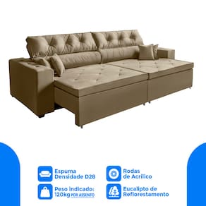 Sofá New Austin 2,02 m Retrátil com Molas Castor