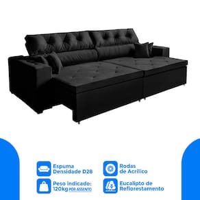- Encosto fixo, almofadas fixas compostas de 100% fibra siliconada e para maior conforto.