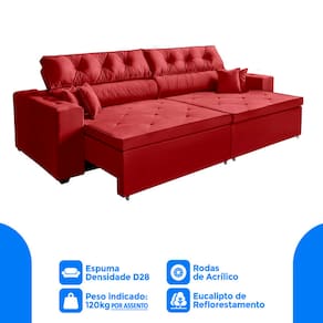 - Encosto fixo, almofadas fixas compostas de 100% fibra siliconada e para maior conforto.