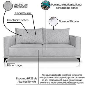 Sofa Nori 2 Lugares Pes De Ferro 180cm Linho Boucle 3302 Ezz 3302